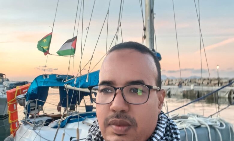 وقال المحامي أنس ولد محمد فال في مقطع فيديو من فوق متن السفينة إنه يمثّل المحامي الموريتاني، لافتا إلى أنهم قادمون لكسر الحصار عن غــ.ــزة.