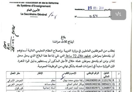 وزارة التربية تنذر 17 مدرسا بالفصل في حال عدم الالتحاق بالعمل