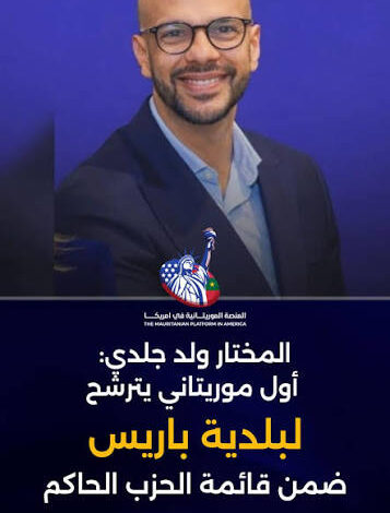 تانيد ميديا : أعلن المختار ولد جلدي ترشحه لانتخابات مجلس بلدية باريس، ليكون أول موريتاني يخوض هذا الاستحقاق المحلي ضمن قائمة تقودها البرلمانية كاترين إبلِد عن الحزب الحاكم في الدائرة الخامسة عشرة بالعاصمة الفرنسية.
