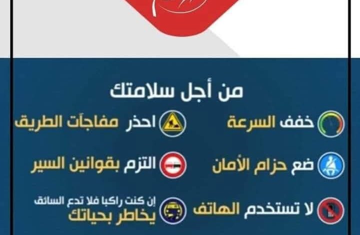 • إلى السائقين: التزموا بالسرعة المحددة، ضعوا حزام الأمان، تجنبوا استخدام الهاتف أثناء القيادة، توقفوا عند الشعور بالتعب أو النعاس، لا تزيدوا من الحمولة، واحذروا من مفاجآت الطريق؛